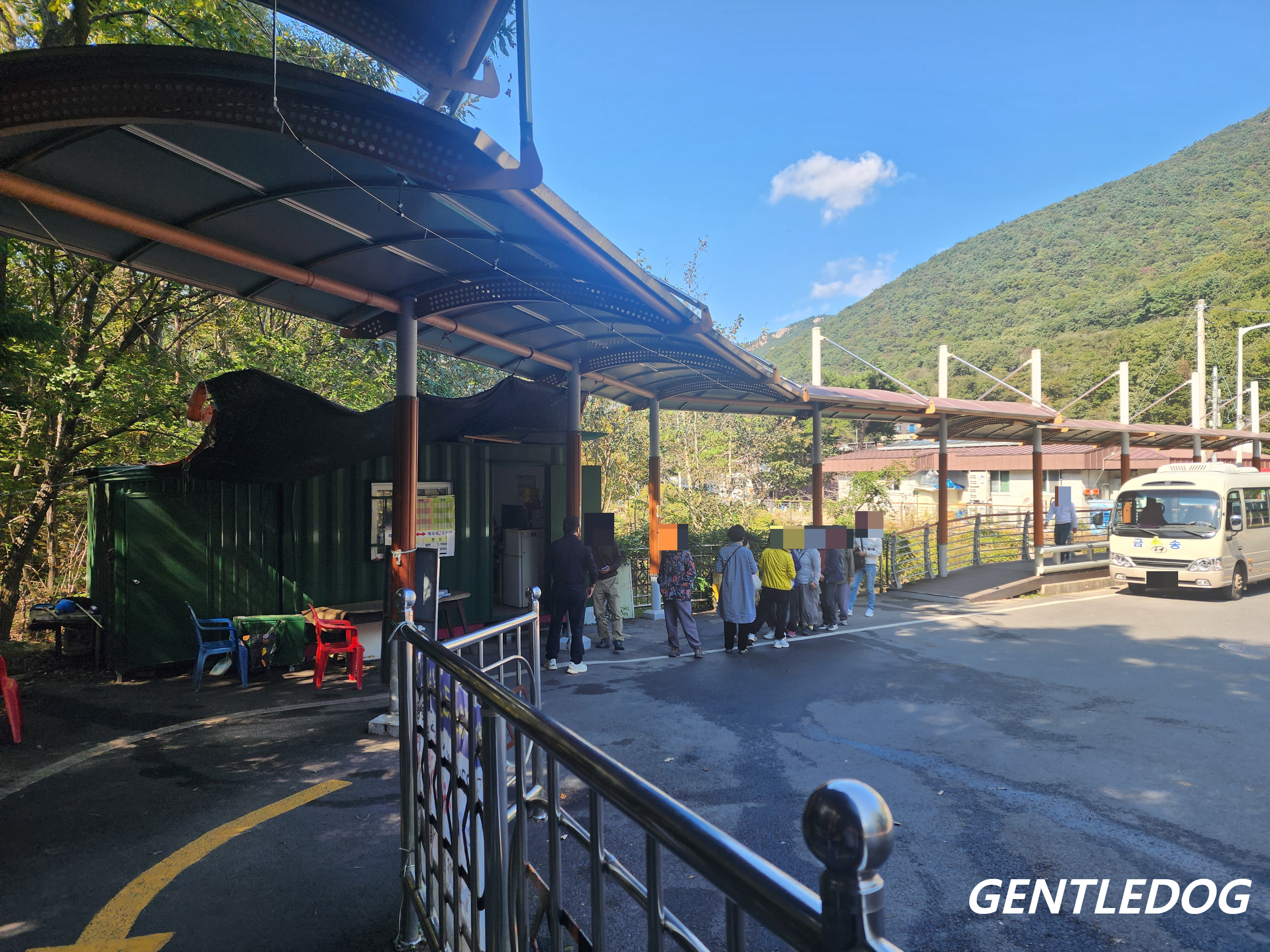 주차장 안쪽으로 들어가면, 셔틀버스 매표소가 있습니다.