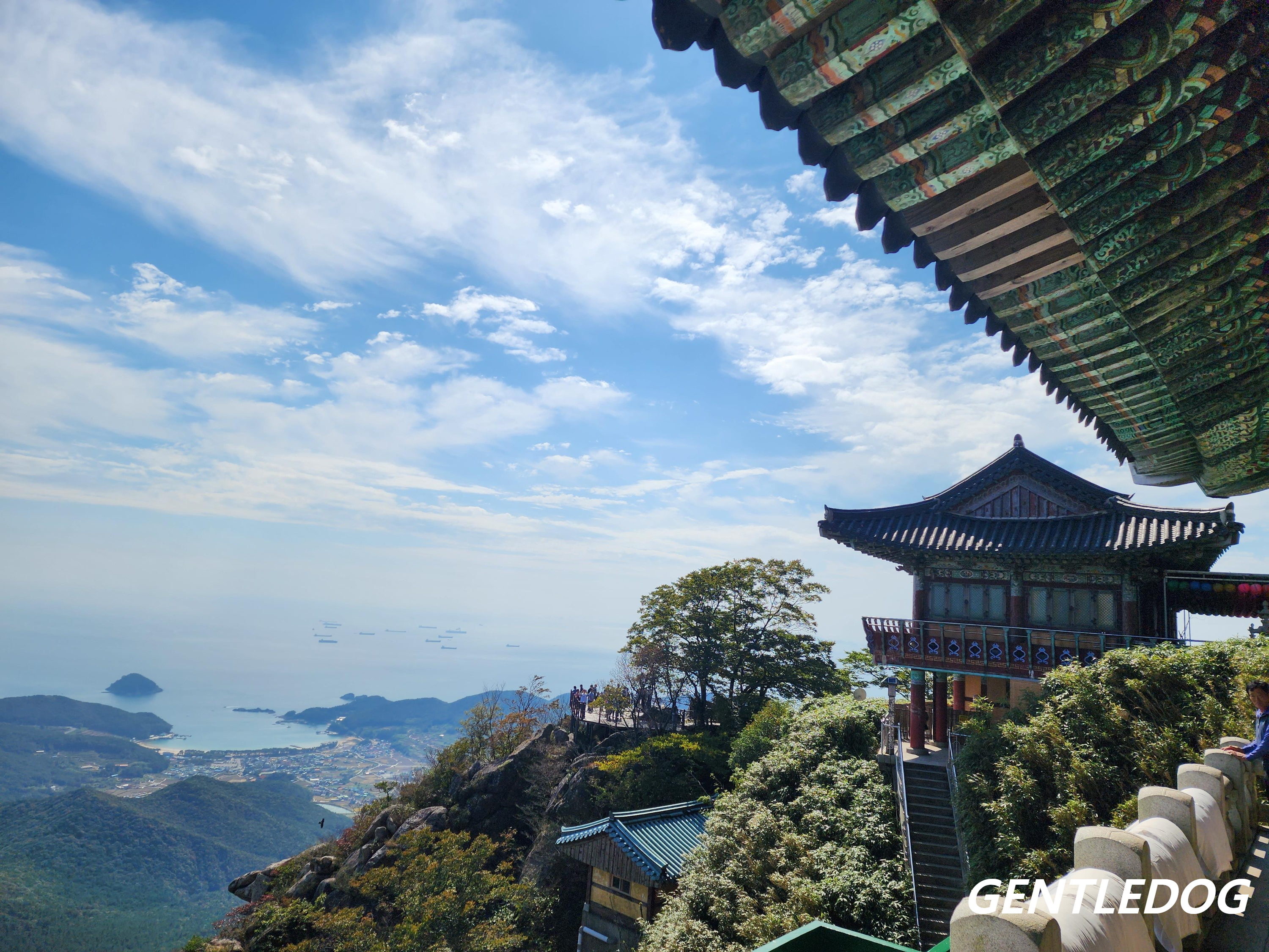 깎아지는 바위산 위로 앞에 바다와 산의 능선이 아름다운 사찰로, 현실감이 살짝 없어지는 몽환적인 곳입니다.