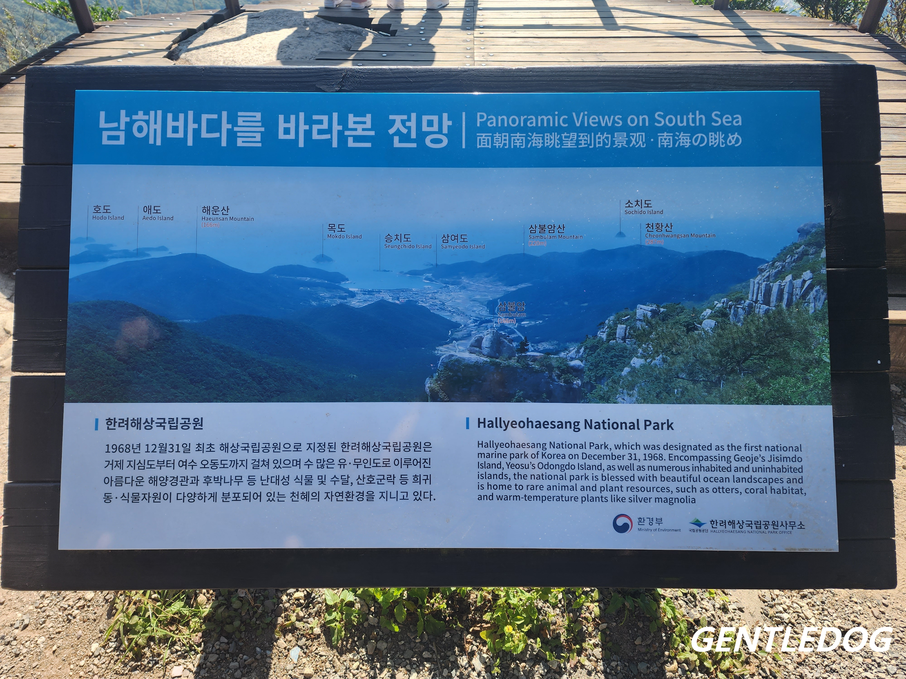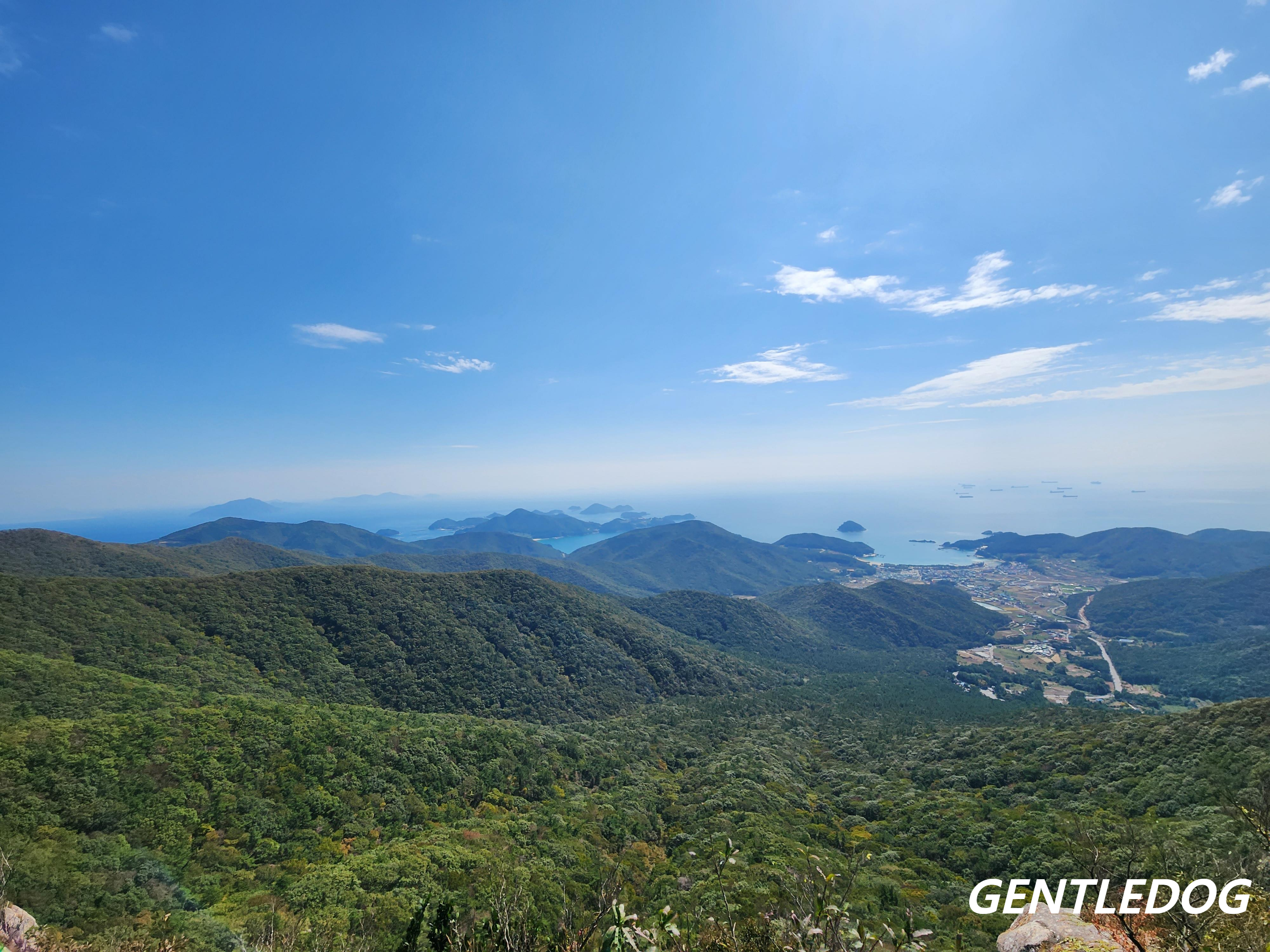올라가다 보면 전망대가 있는데, 남해바다를 바라보는 전망이 기가 막힙니다.