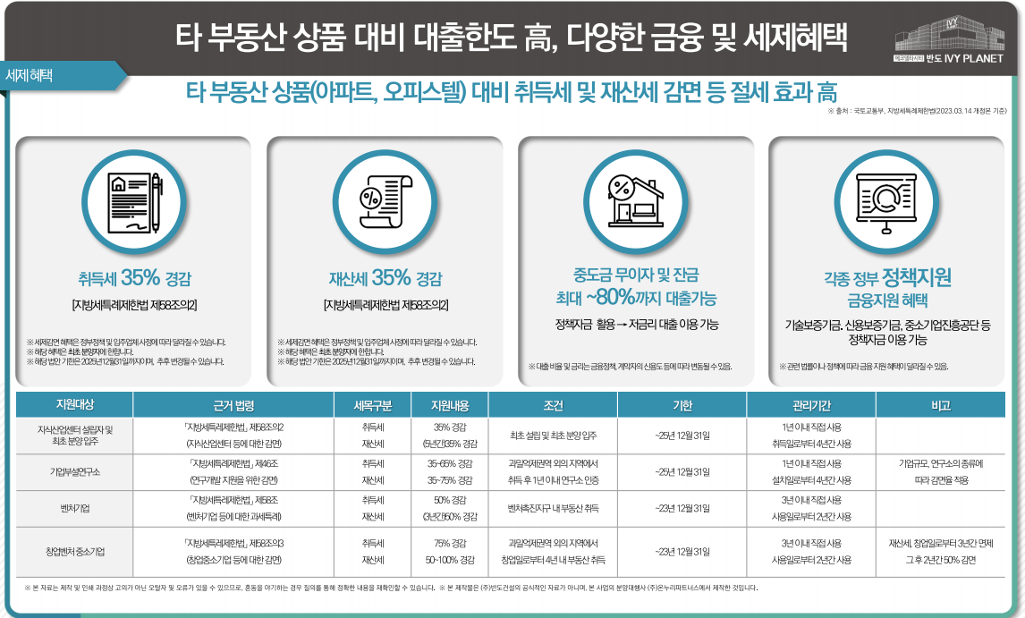 재산세 5년간 35% 경감, 외 각종 정부 정책 지원 금융 지원 혜택을 받아 보실 수 있습니다.