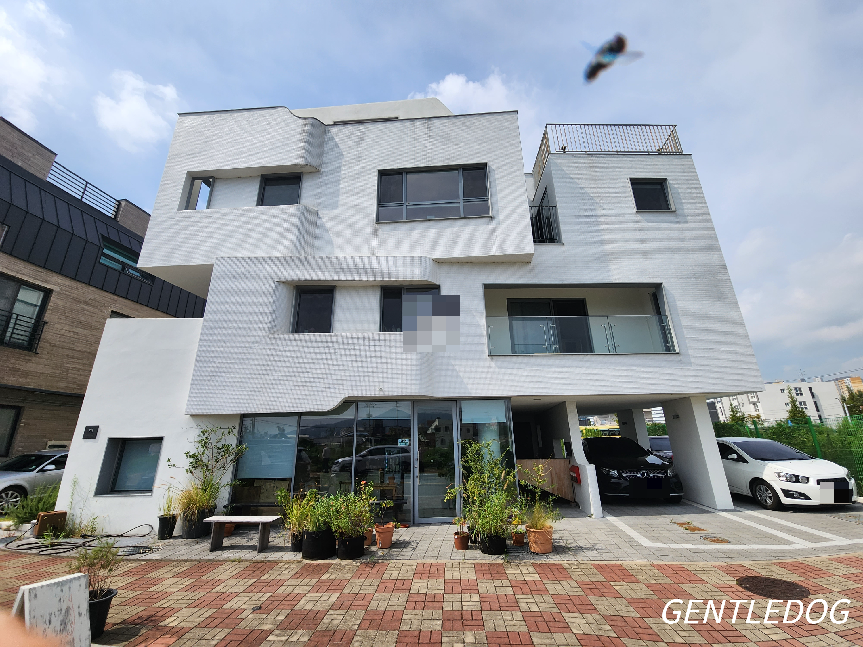 흰색 타일의 팬션같이 생긴 건물로 가게도 아주 예쁩니다.
