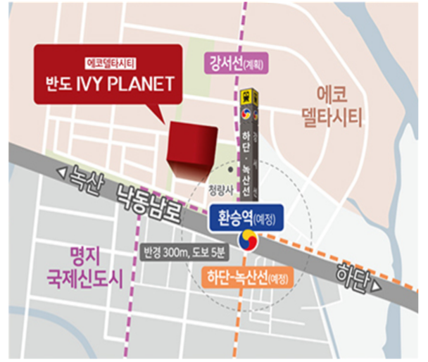 부산 내 인구가 증가하는 몇 안되는 도시 중 하나인 강서구에 건설되는 반도 아이비 플래닛.