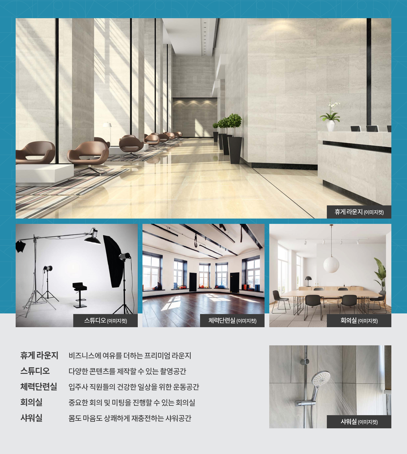 휴게라운지와 스튜디오, 체력단련실과 회의실, 샤워실 등 입주민의 쾌적한 업무생활을 위한 프리미엄 커뮤니티가 조성됩니다.