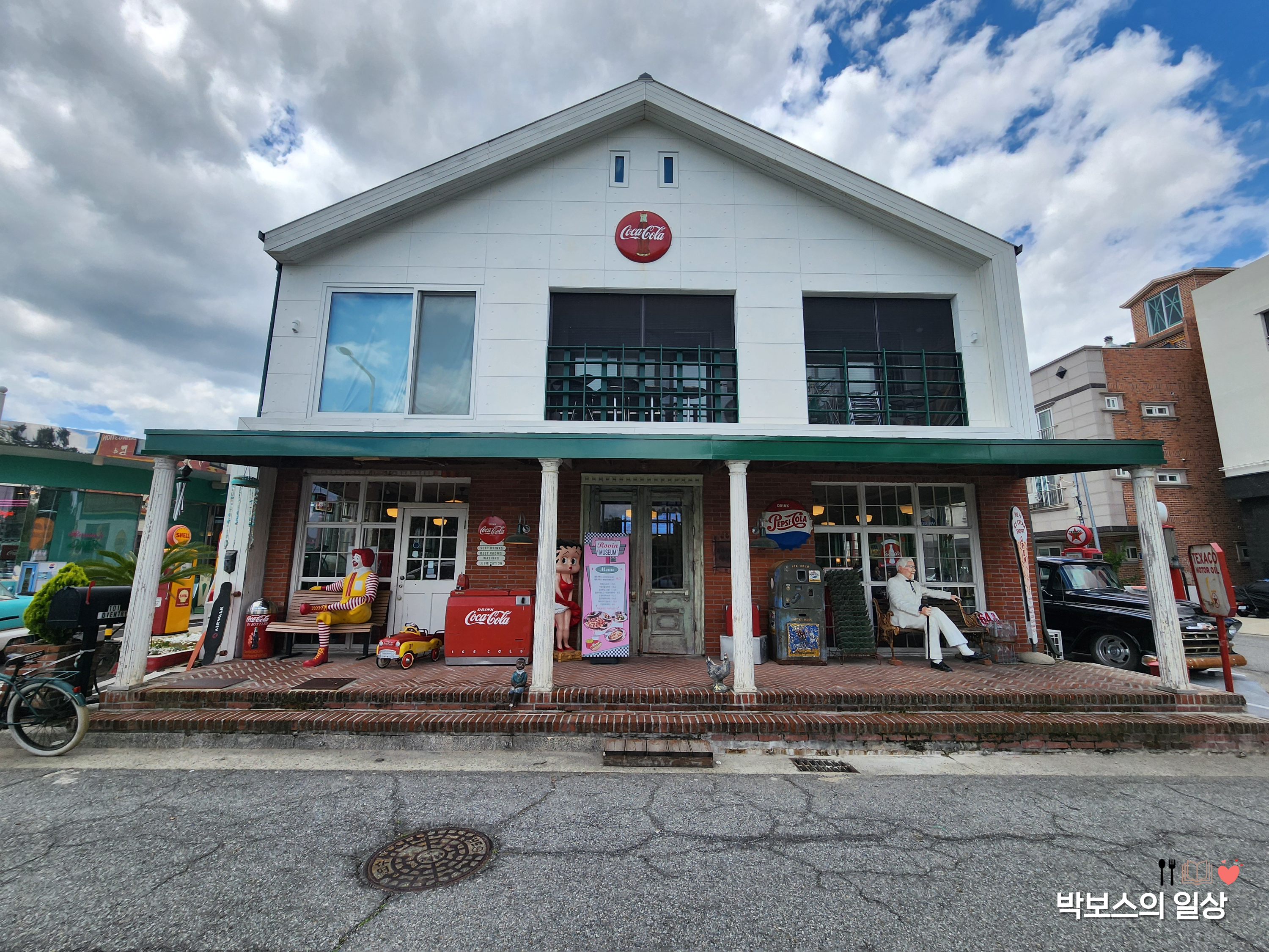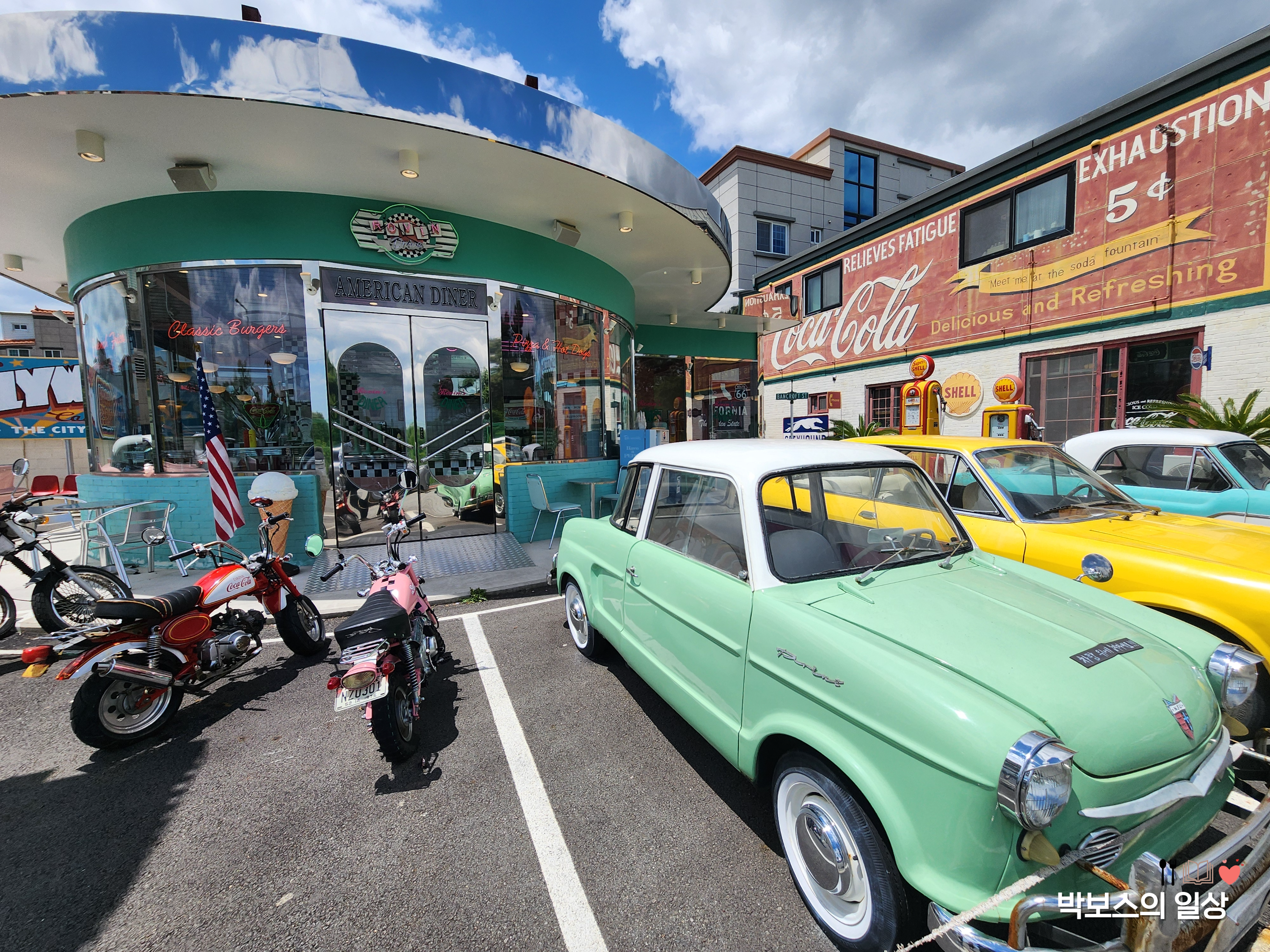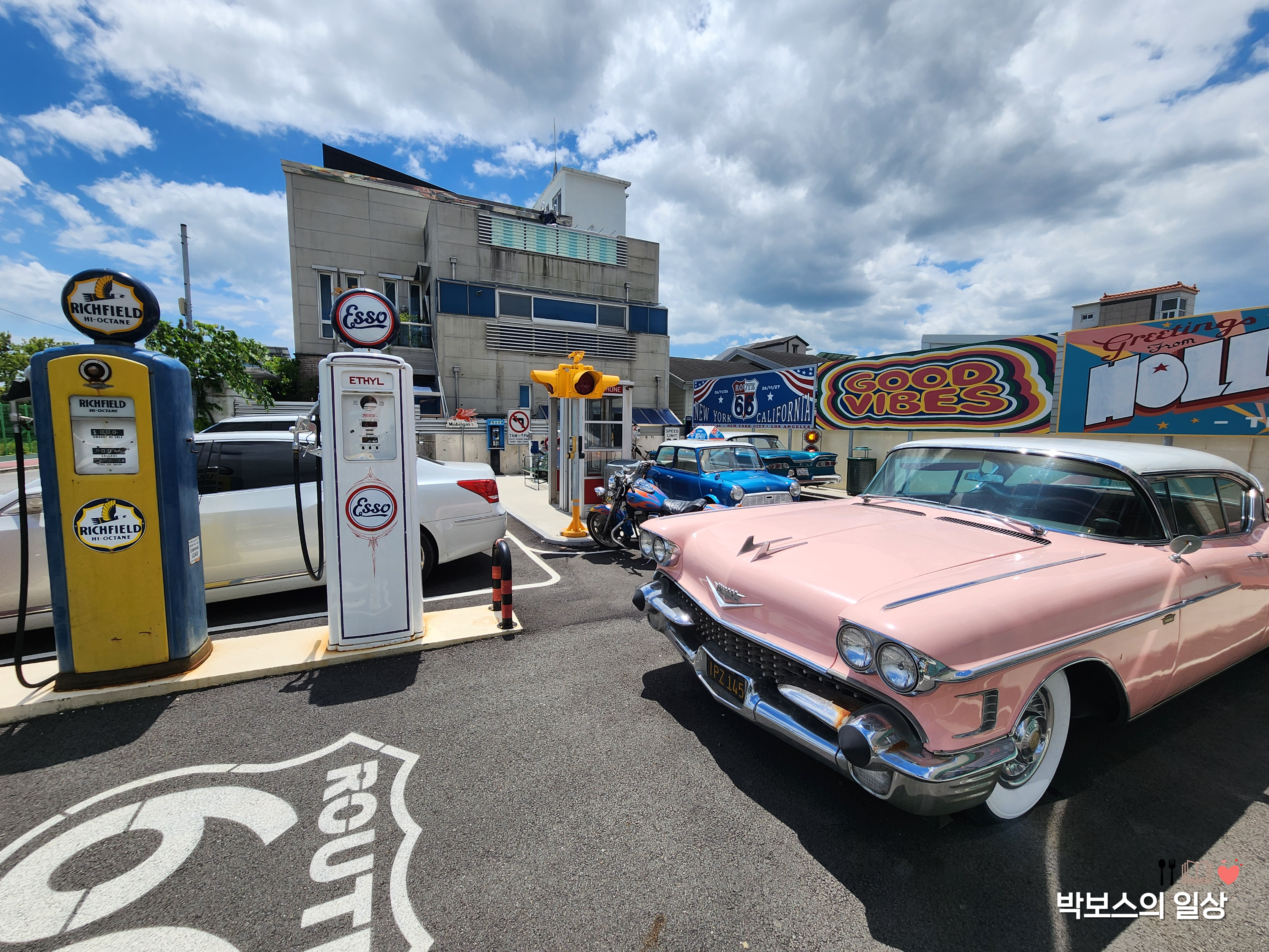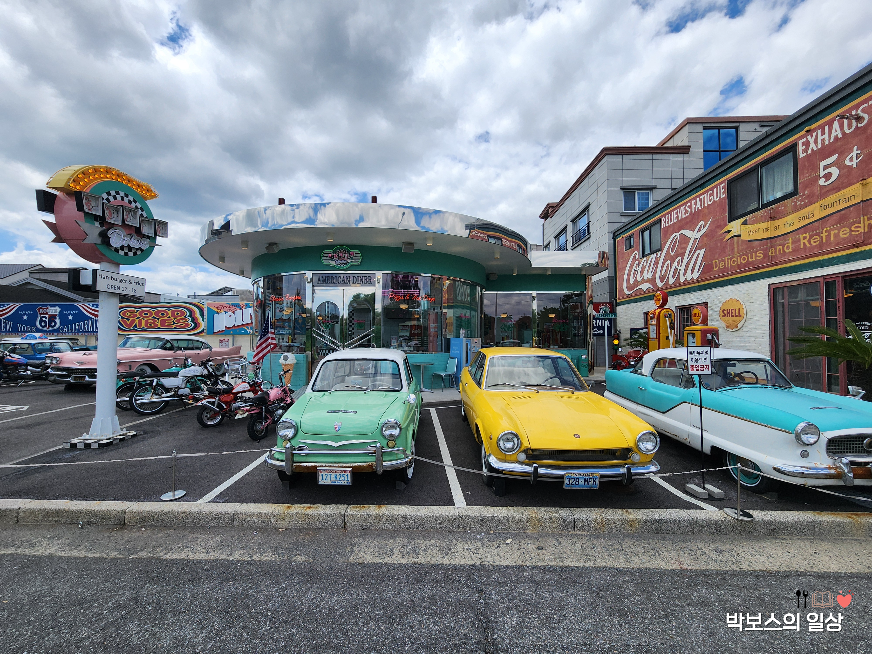 본관 왼쪽에 여러 엔틱한 자들과 , 영화에서나 봤을 듯한 주유소 모습, 전화부스 등 신기하고 예쁜 소품들이 많았습니다. 자유롭게 볼 수 있게 전시를 해 놓았기 때문에 사진 찍기도 좋았구요, 형형 색색의 차량들 옆에서 사진을 찍으니 진짜 미국에 와있는 것 같은 느낌이었습니다.