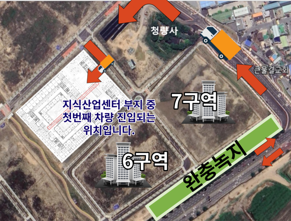완충녹지로 인해, 도시지원 블록에 진입할 경우, 첫 번째로 진입할 수 있는 입지!