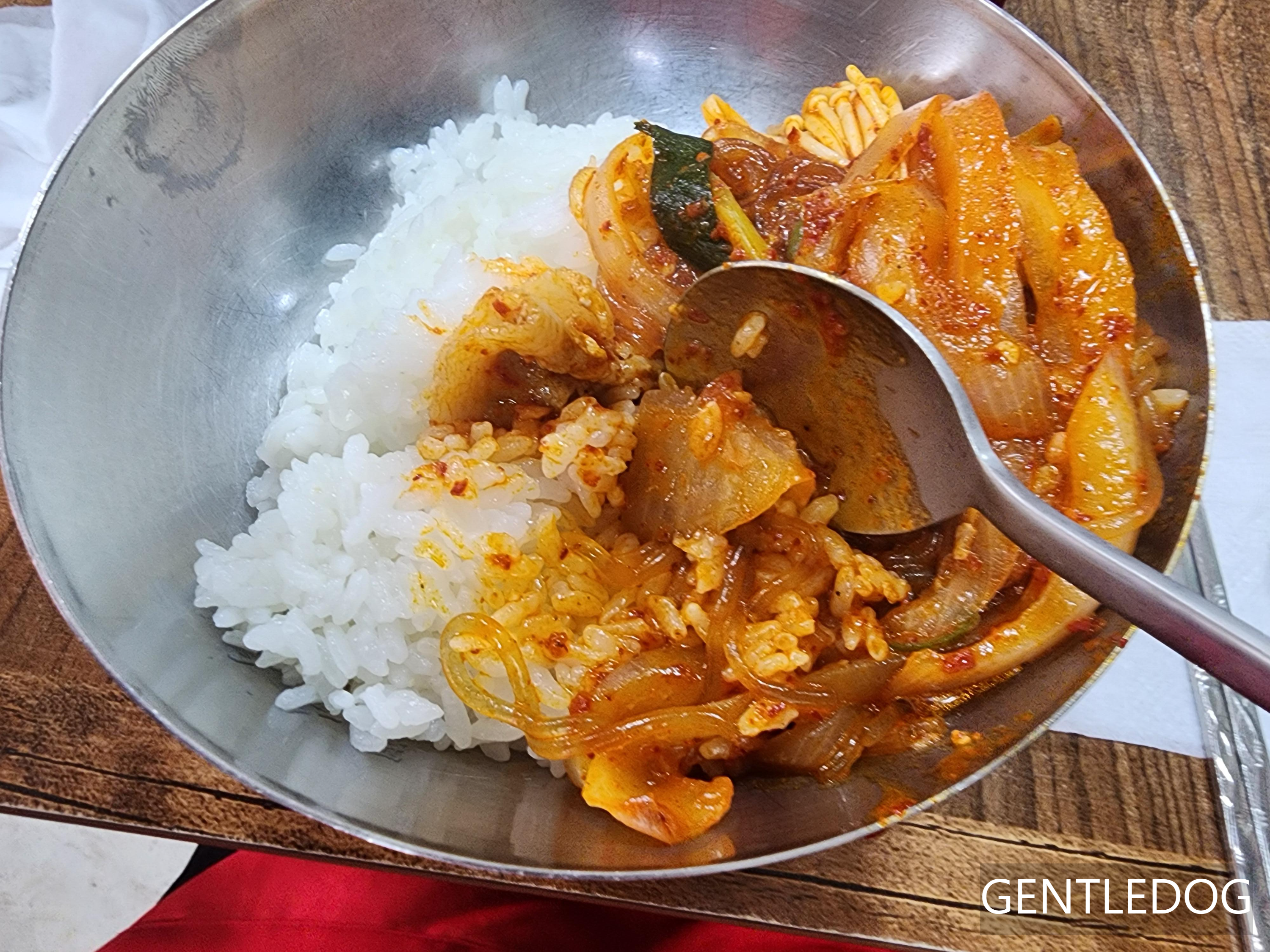 아, 공깃밥은 넓은 스탠그릇에 줍니다. 약간 기사식당의 바이브랄까