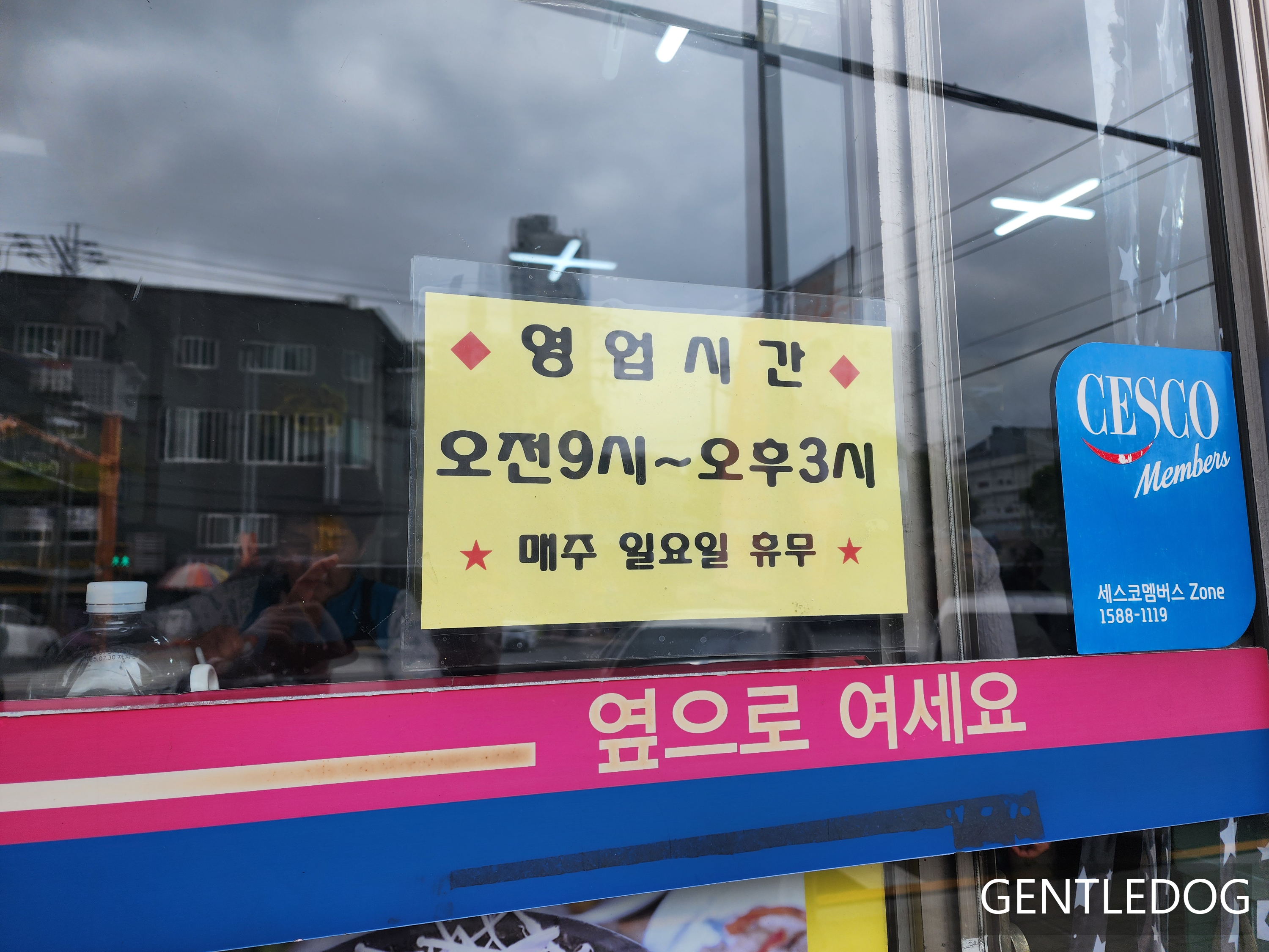 영업시간은 일요일 휴무, 오전 9시부터 오후 3시까지입니다.