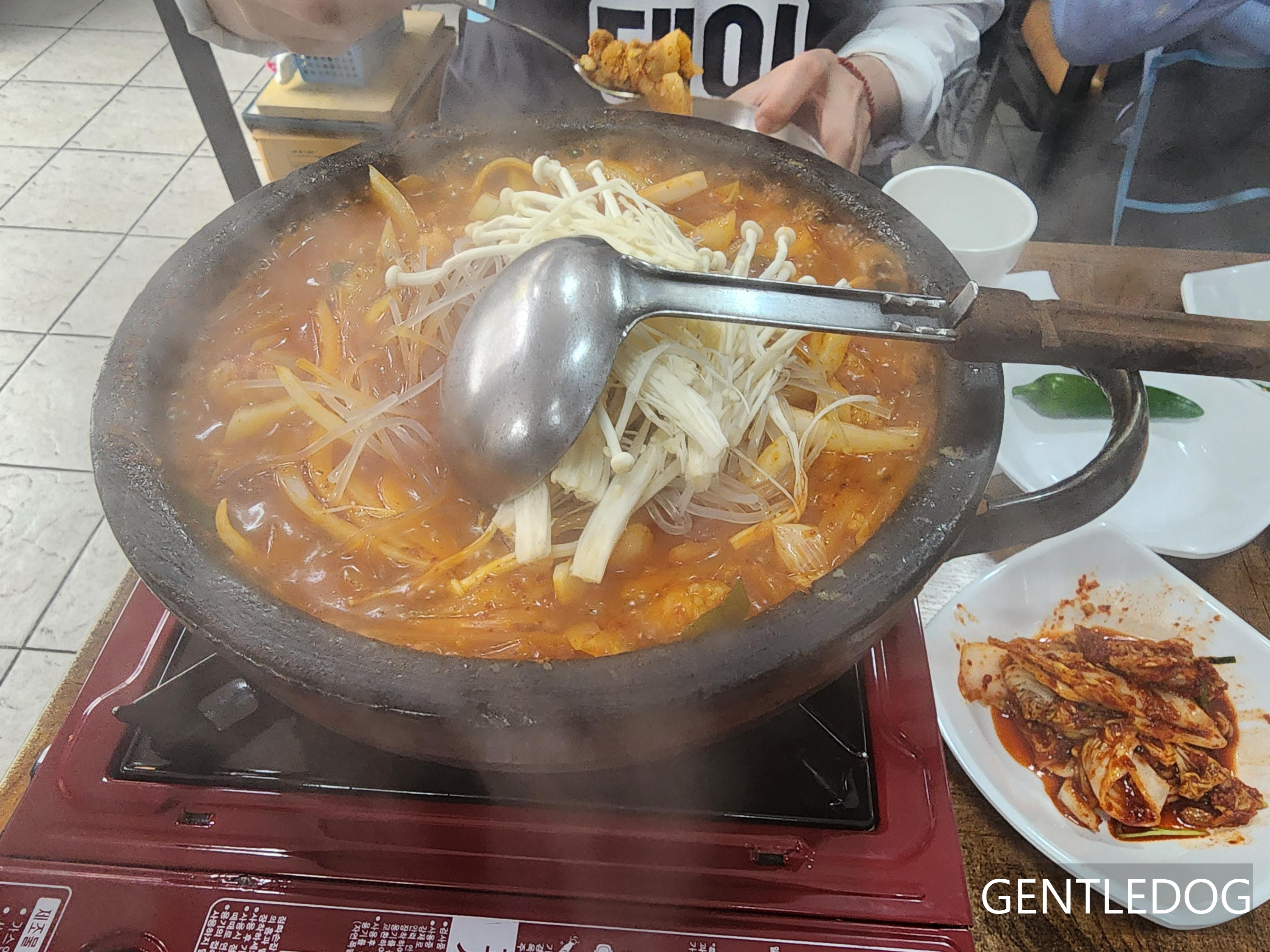 돌곱창은 곱창의 쫄깃함과 진한 전골국물이 공깃밥 추가를 부릅니다.