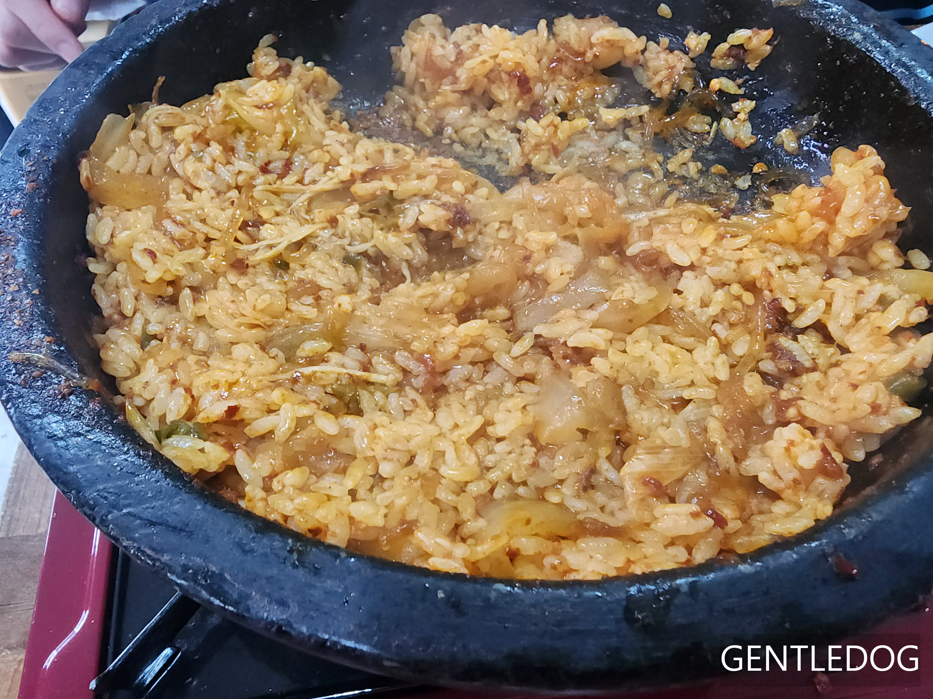 먹다 보니, 볶아먹고 싶어서 남은 돌곱창 양념에 공깃밥 추가해서 볶아 먹었습니다.