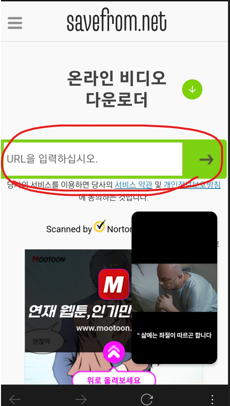 2) 다운로더 사이트를 접속해서 주소를 붙여 넣습니다.