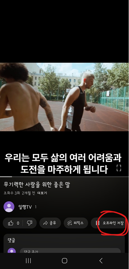 유튜브 영상을 찾아서, 오른쪽 아래 오프라인 저장을 터치하시면 끝!