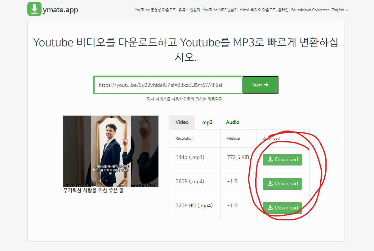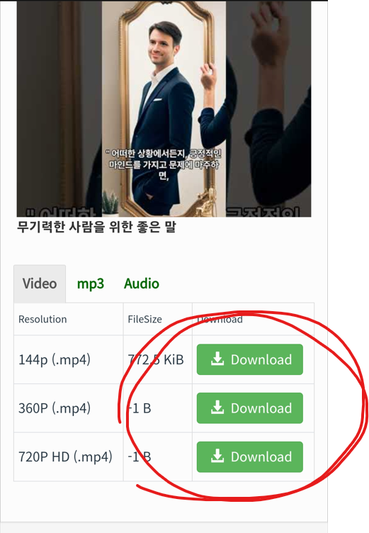 위와 같이 화면이 떴다면, 다운로드를 눌러서 영상을 받으면 끝!