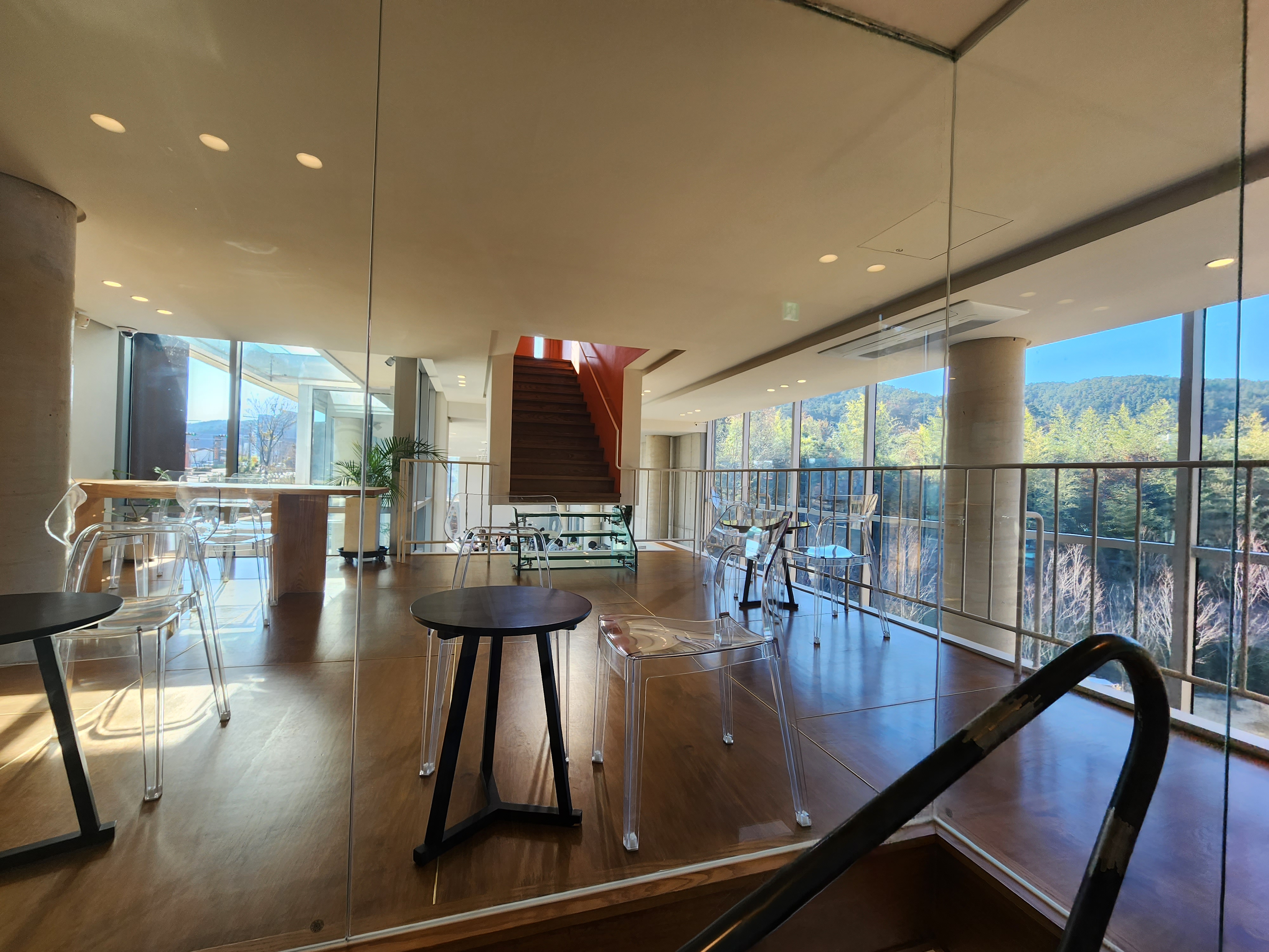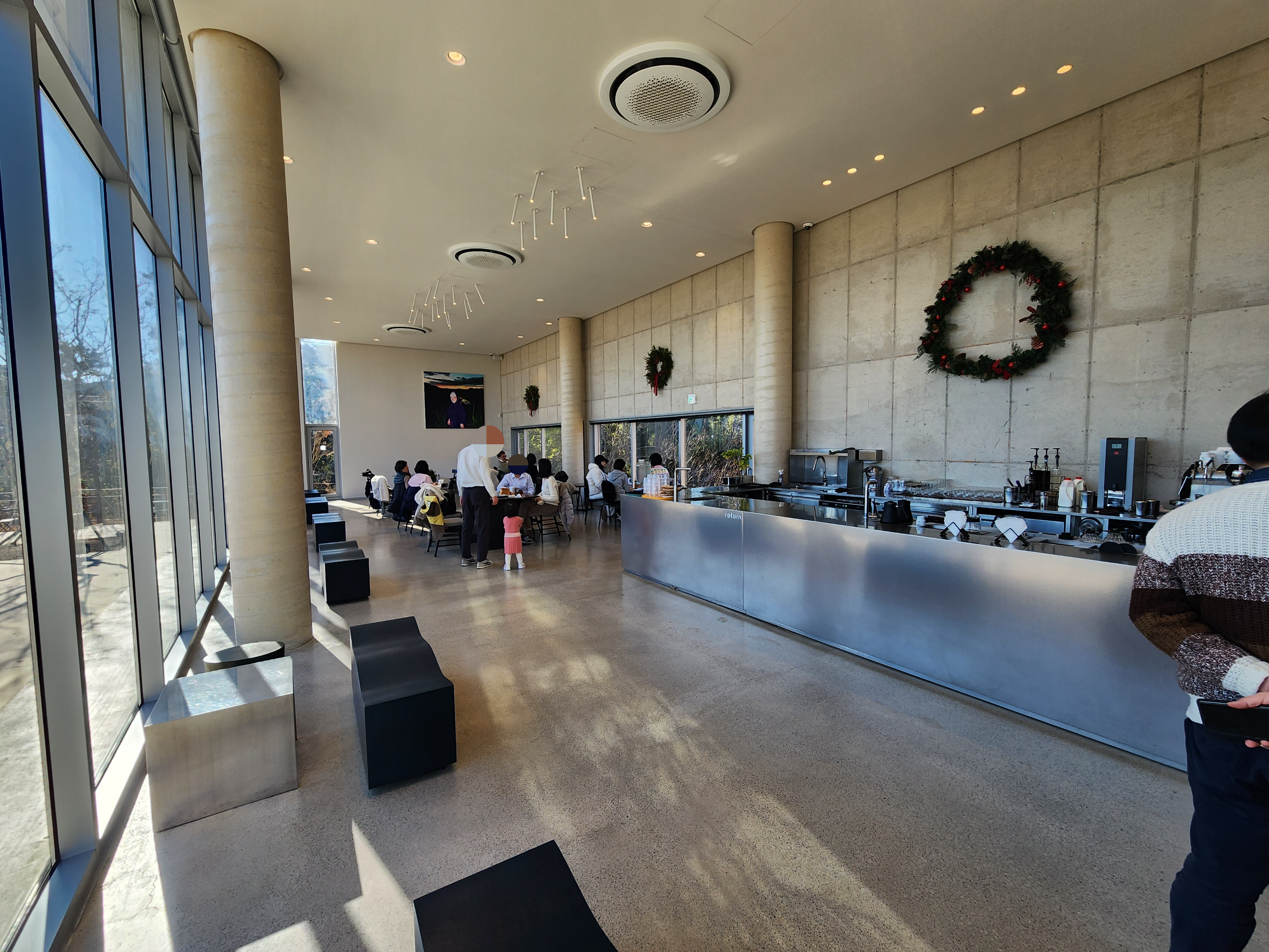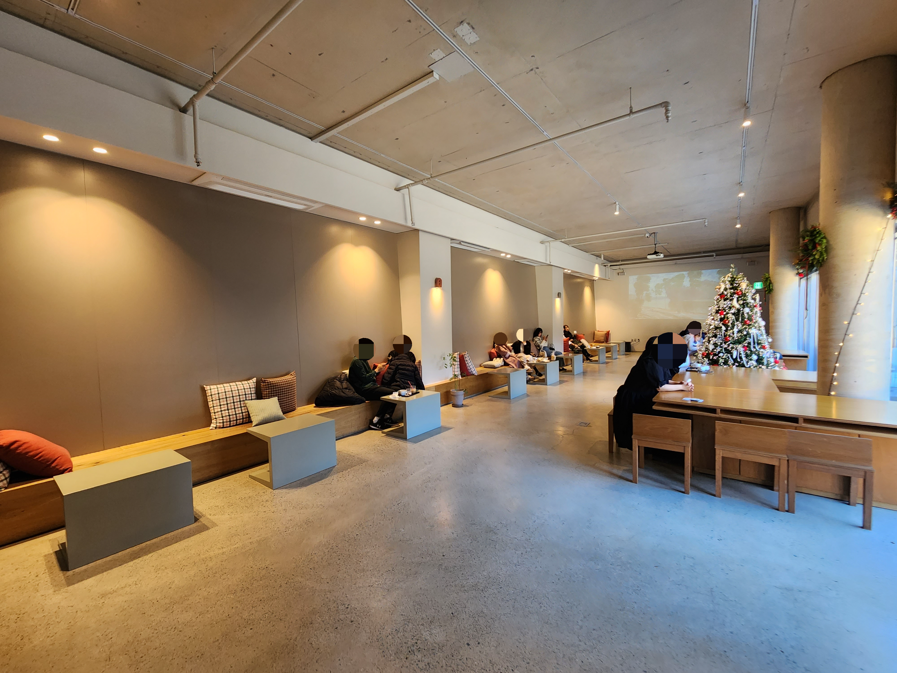 카페 공지가 가장 좋았던 점은, 층고가 높고 통유리로 되어있는 노출 콘크리트라서 개방감이 좋은 시원시원한 느낌을 받는 것인데요! 완전 대형카페가 아님에도 불구하고, 답답함 하나 없이 쾌적하고 상쾌한 느낌입니다.