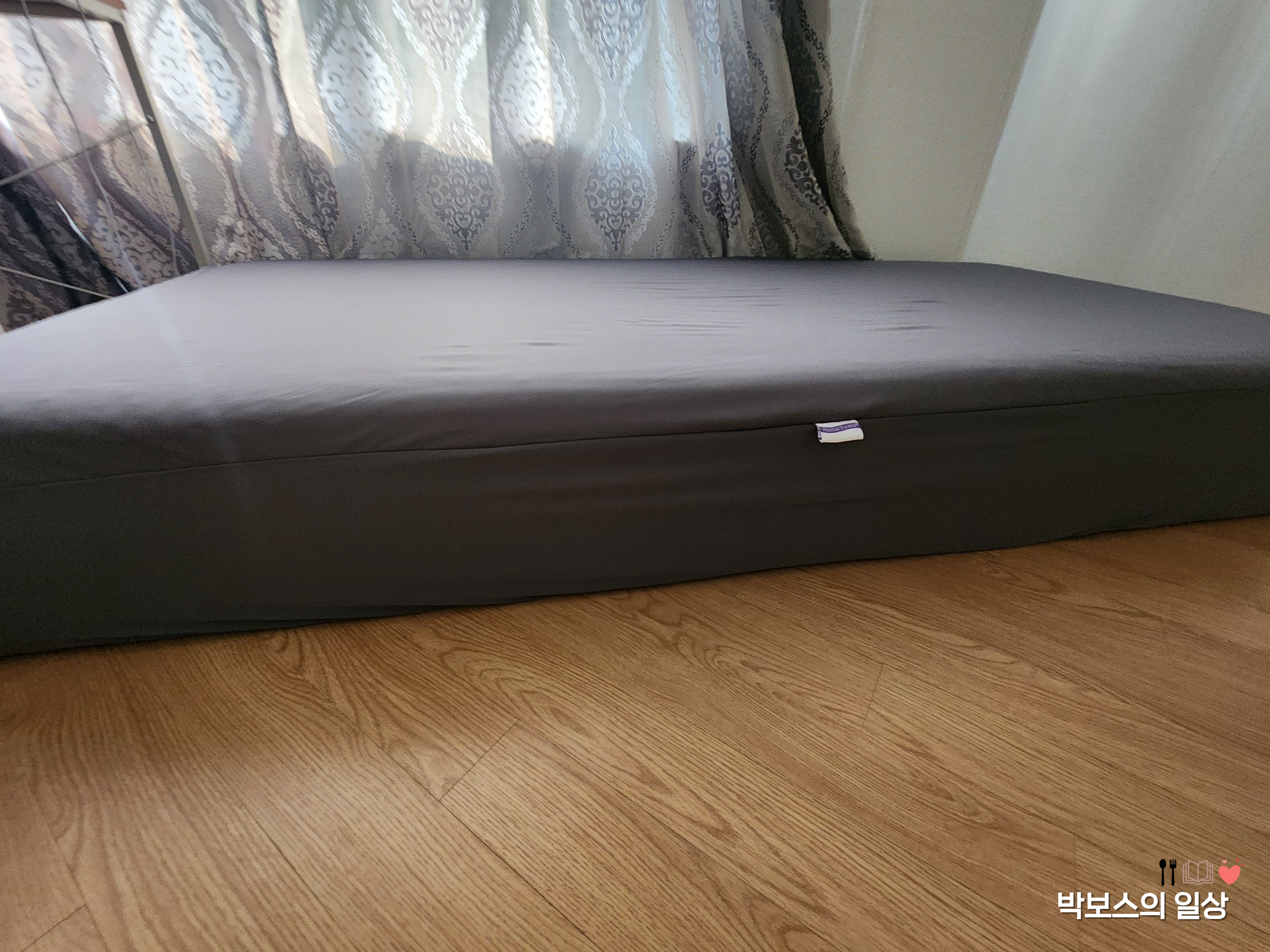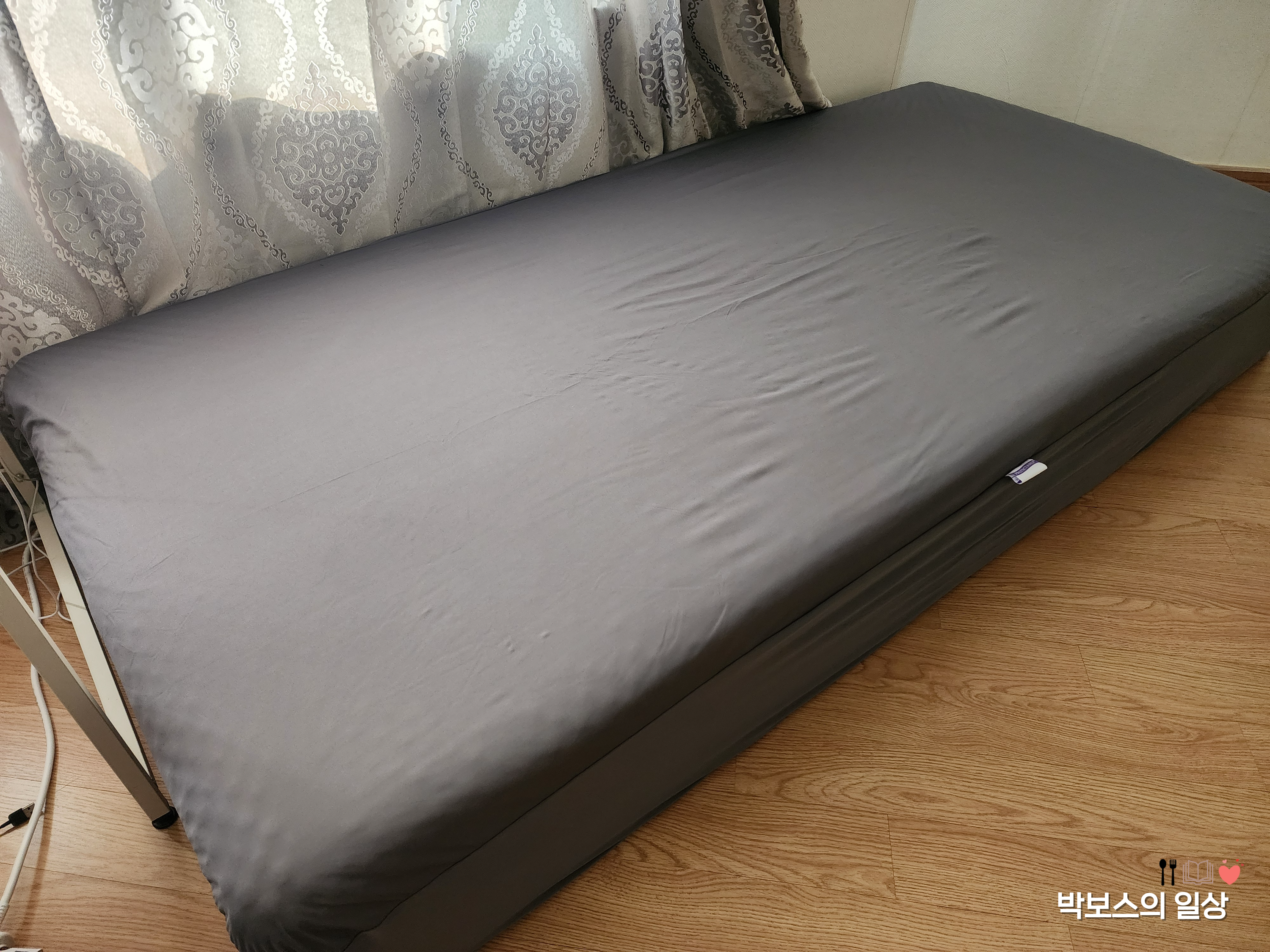 싱글 사이즈 매트리스에 혼자 설치하기 편리합니다. 매트리스가 많이 두꺼운 편이라 무거움에도 불구하고, 고무 밴딩이 잘 늘어나 쉽게 설치 할 수 있었습니다. 사이즈는 조금 빡빡했는데, 신축성이 있어서 매트리스 고정을 위해서라도 좀 빡빡한 느낌이었구나 하고 생각이 드네요.