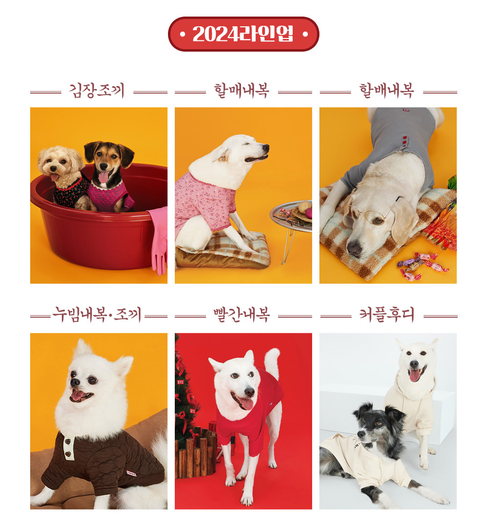 김장조끼: 한국 고유의 김장 문화를 반영한 독특한 디자인으로, 반려견 보호자들의 호기심을 자극합니다.