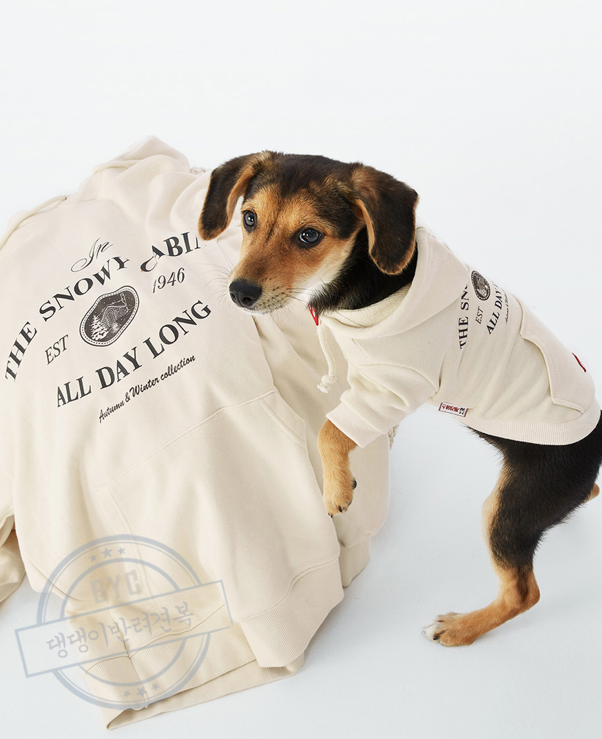 커플후디: BYC 올데이롱 후드티와 같은 디자인으로 반려인과 반려견이 커플룩을 연출할 수 있습니다.